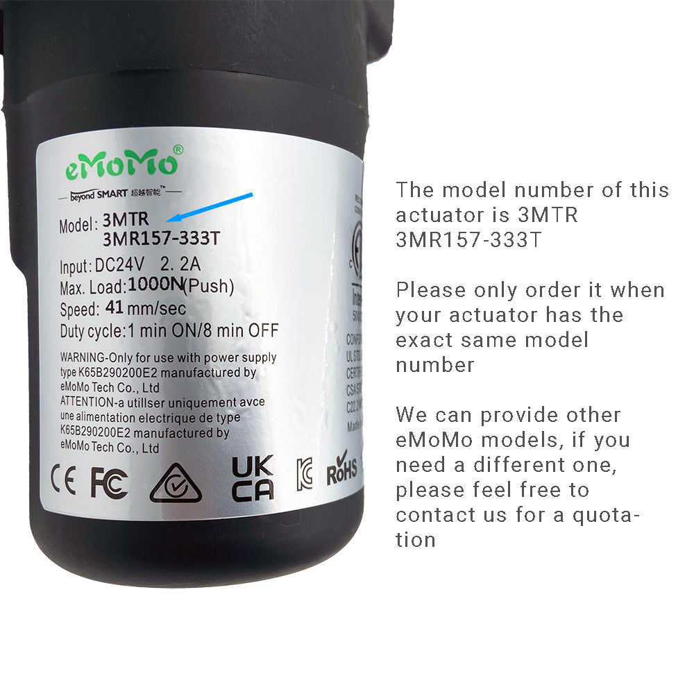 This actuator is a direct replacement for eMoMo 3MTR 3MR157-333T linear actuator. If your actuator's model number is different, this actuator won't be a suitable replacement.
