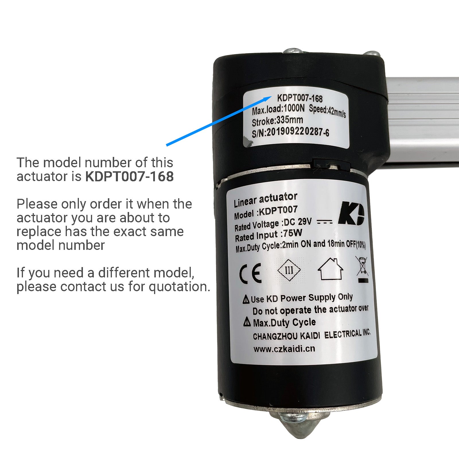 - This is the genuine Kaidi KDPT007-168 linear actuator assembly.