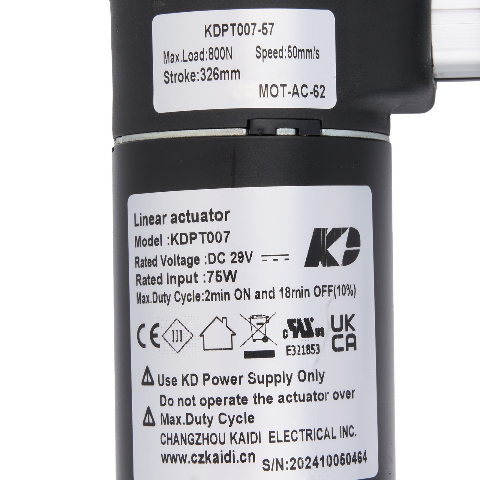 - This linear actuator is not cross compatible, please only order it when your existing actuator has the exact same model number- KDPT007-57.