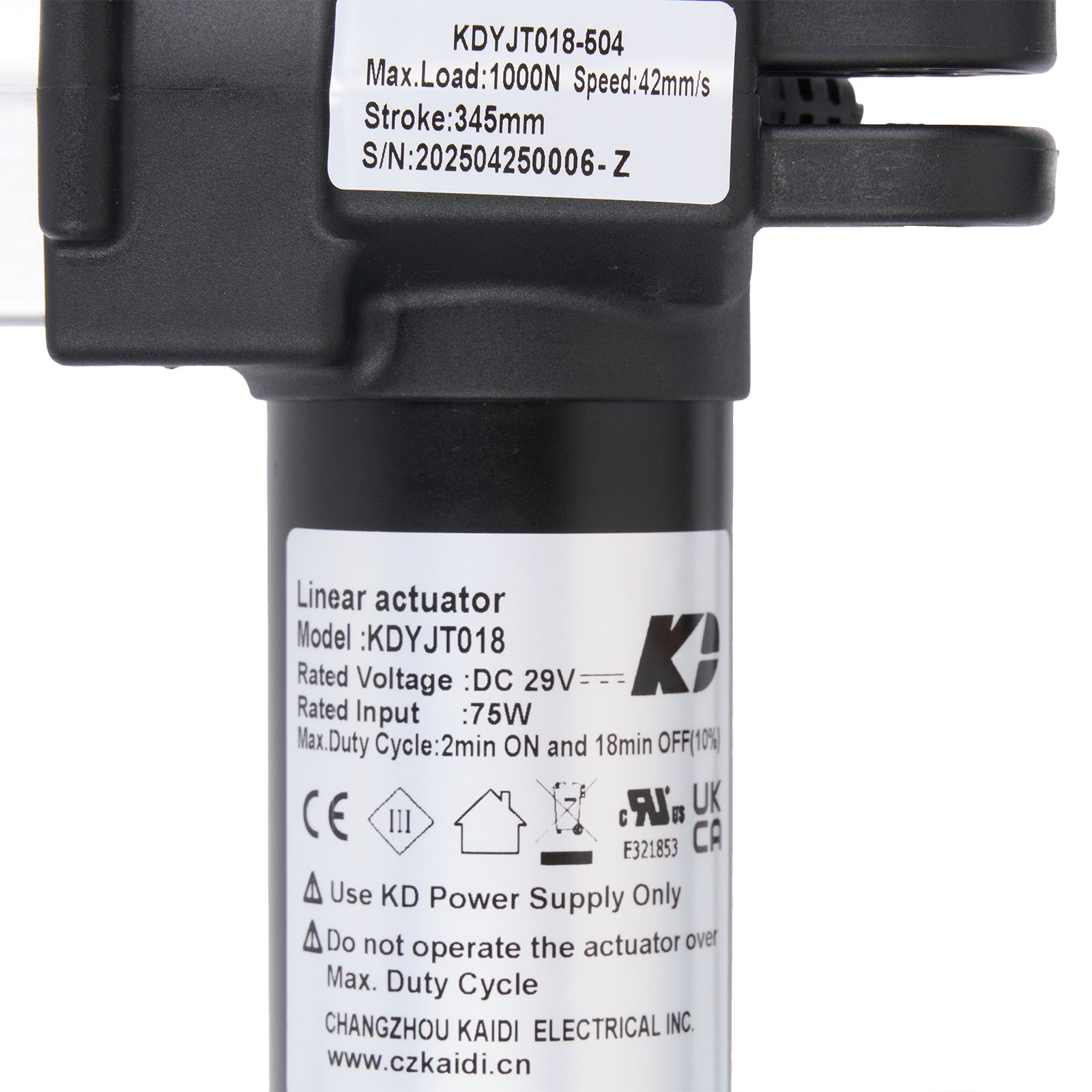 This is the genuine KAIDI KDYJT018-504 linear actuator.