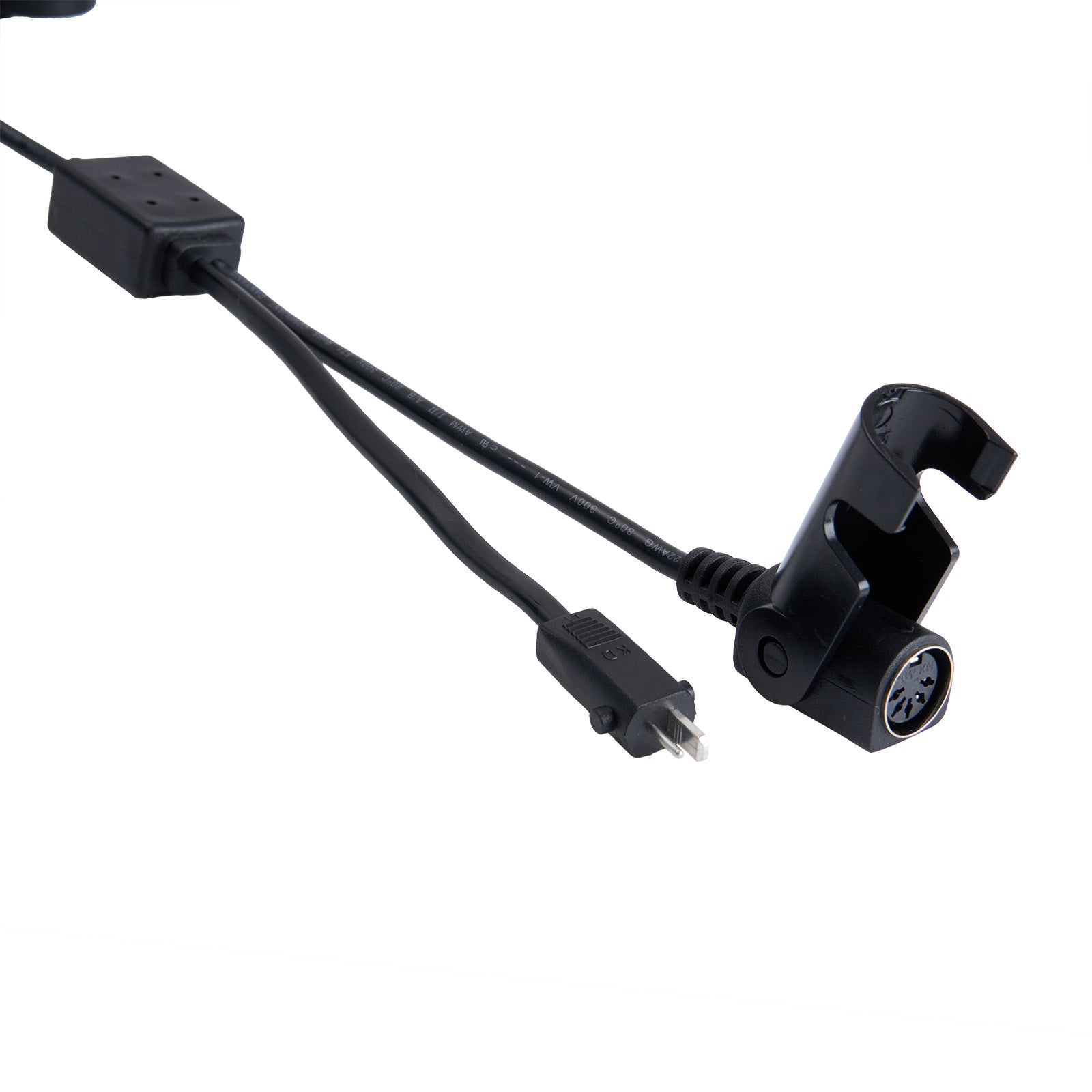 - A female 5 pin plug connects to the remote controller/switch.