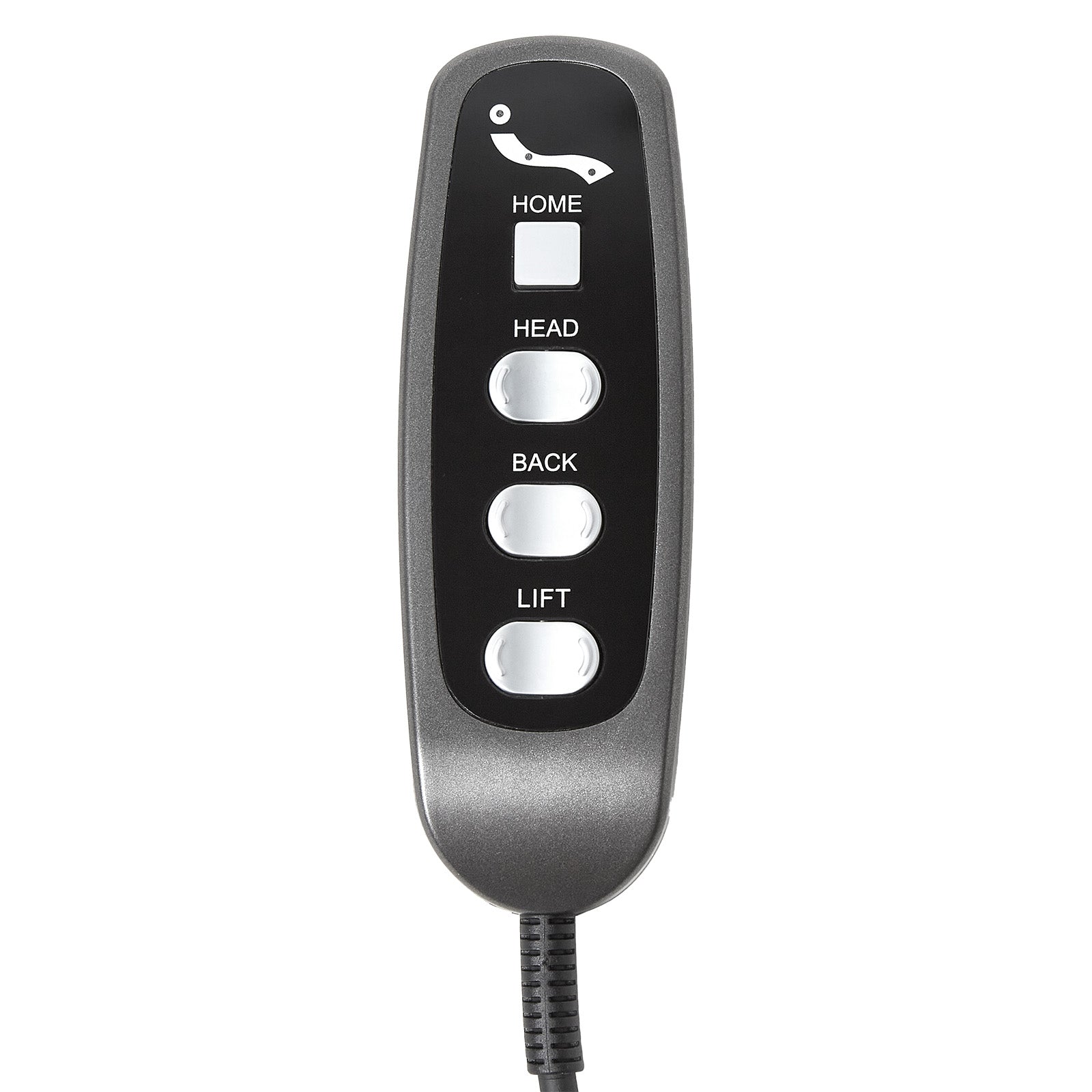 - Home button: close the footrest/ottoman and the backrest, lift the chair to origin position