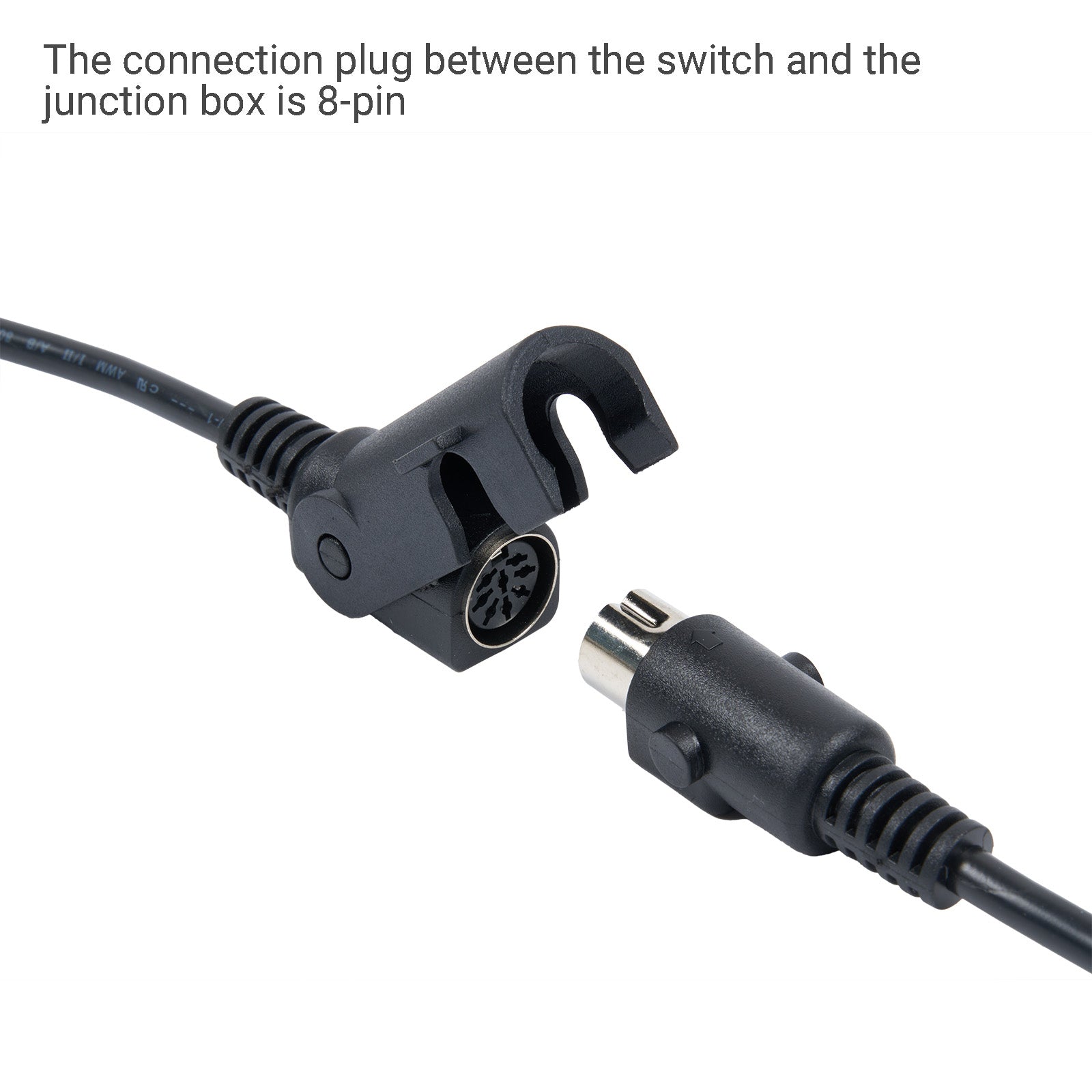 - Switch connects to the junction box via an 8-pin male plug.