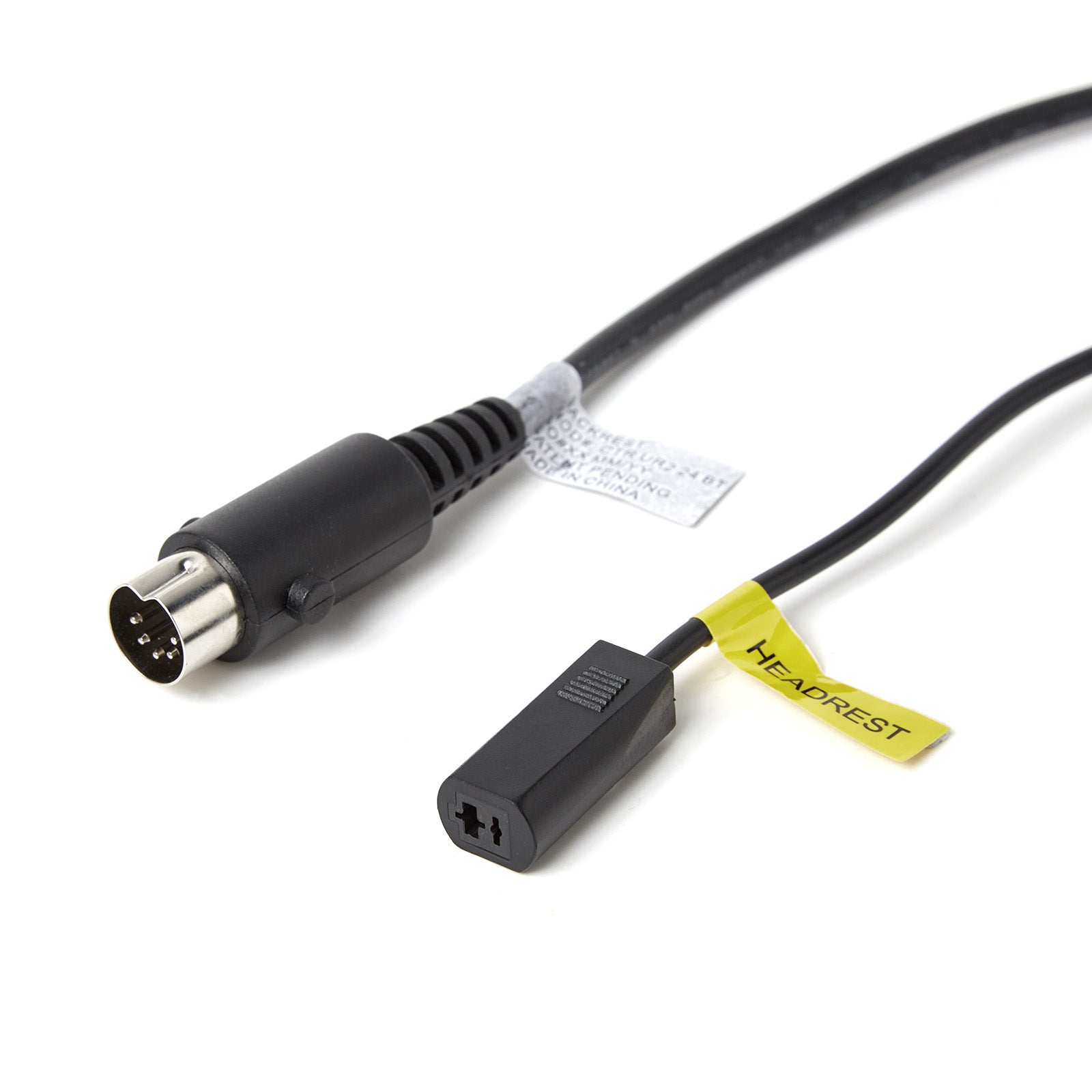 - Two plugs: the switch has two plugs. A male 5 pin plug connects to the footrest motor; a female two pin plug connects to the headrest motor.