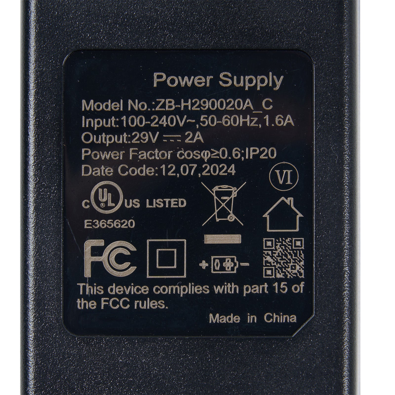 This power adapter features an arch-shaped 2-pin female connector and delivers 29V 2A output, making it compatible with Catnapper and HHC recliners/lift chairs.