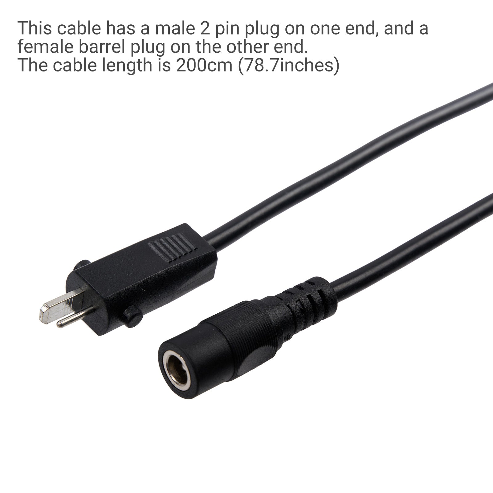 To ensure compatibility, please verify that your existing cable has the identical plug configuration (male 2-pin to female 5.5x2.1mm barrel) and a maximum length of 200 cm (78.7 inches) before ordering this cable.