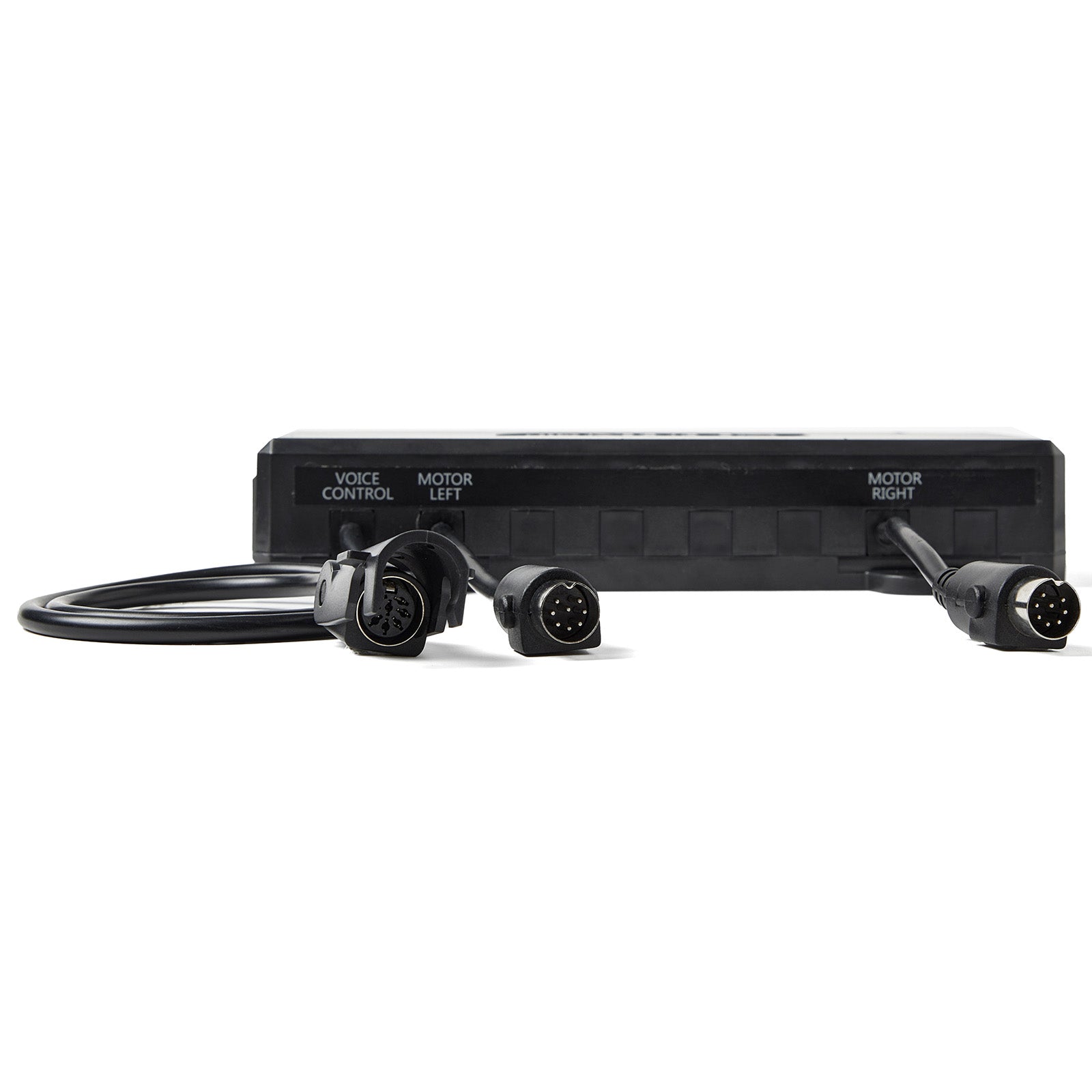 - The junction box has leads and plugs: a female 8-pin plug connects to the controller, two male 8-pin plugs connect to the lift motors.