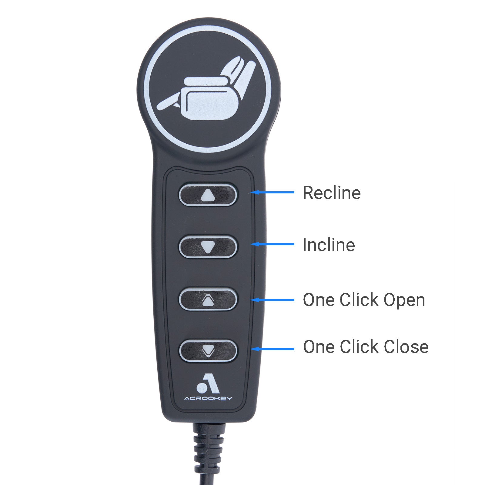 - Genuine Acrookey 4-button remote controller for single-motor power recliners or lift chairs.