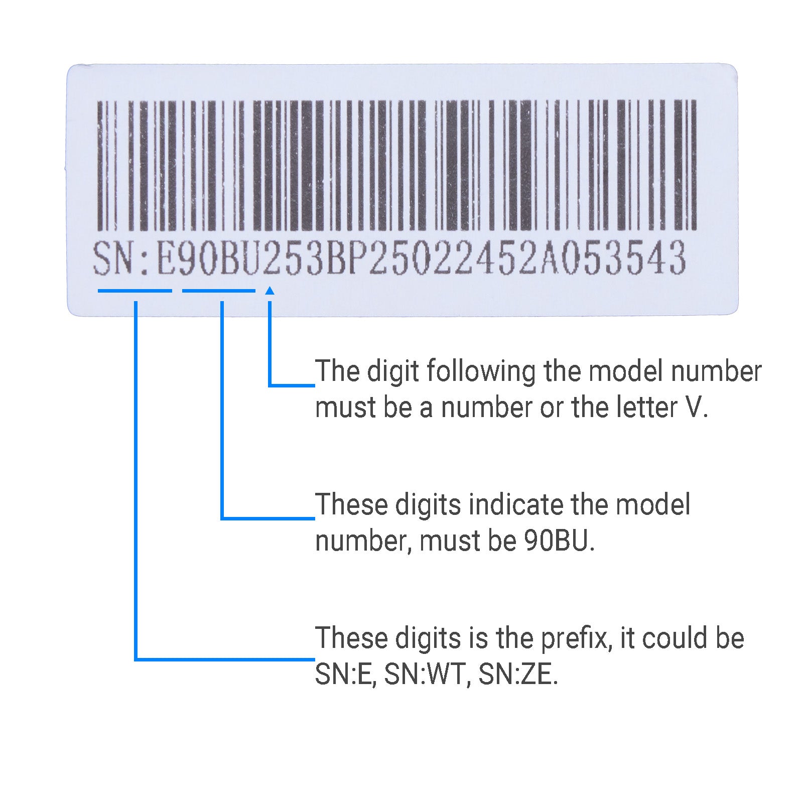 - Check Digit: The character immediately after “90BU” must be a number or the letter V.