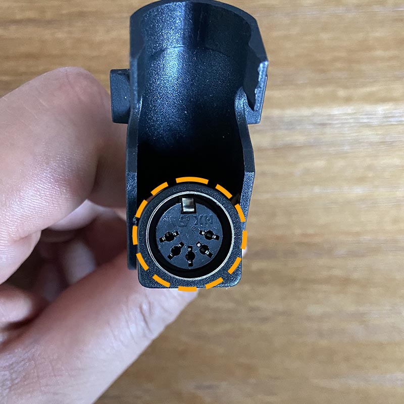 This remote controller uses a standard 5 pin male plug, remote controller cords from the chair shall have a 5 pin female plug as the following image shows.
