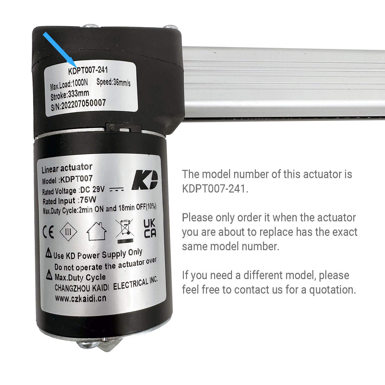 - This is the genuine Kaidi KDPT007-241 linear actuator assembly.