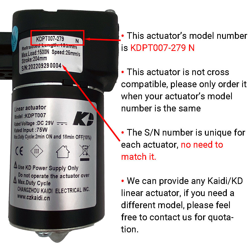 - This actuator can only replace the KDPT007-279 N, if the model of your actuator is different, please avoid order.