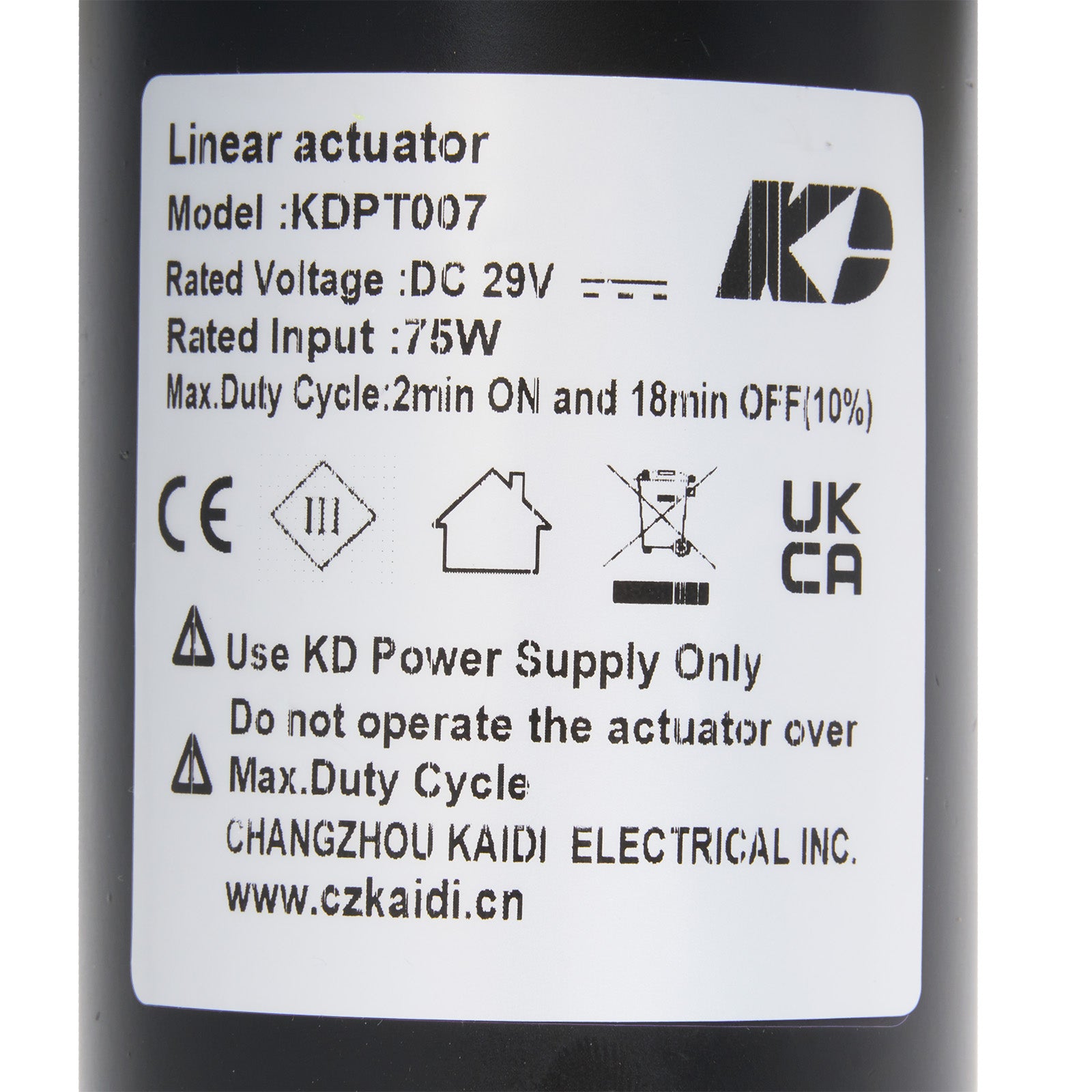 - This linear actuator is not cross compatible, please only order it when your existing actuator has the exact same model number- KDPT007-297.