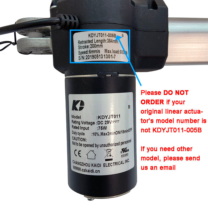 - You can use this linear actuator to replace the original one if it has the same model number KDYJT011-005B B