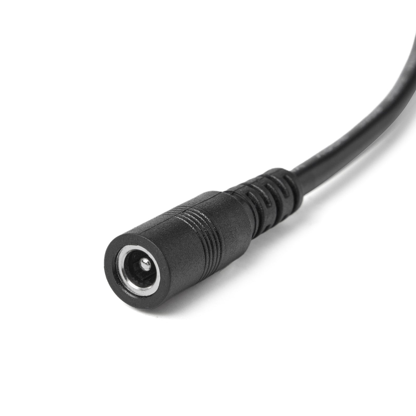 - The other end has a female barrel plug (also known as a DC plug, audio plug, or one-pin plug).
