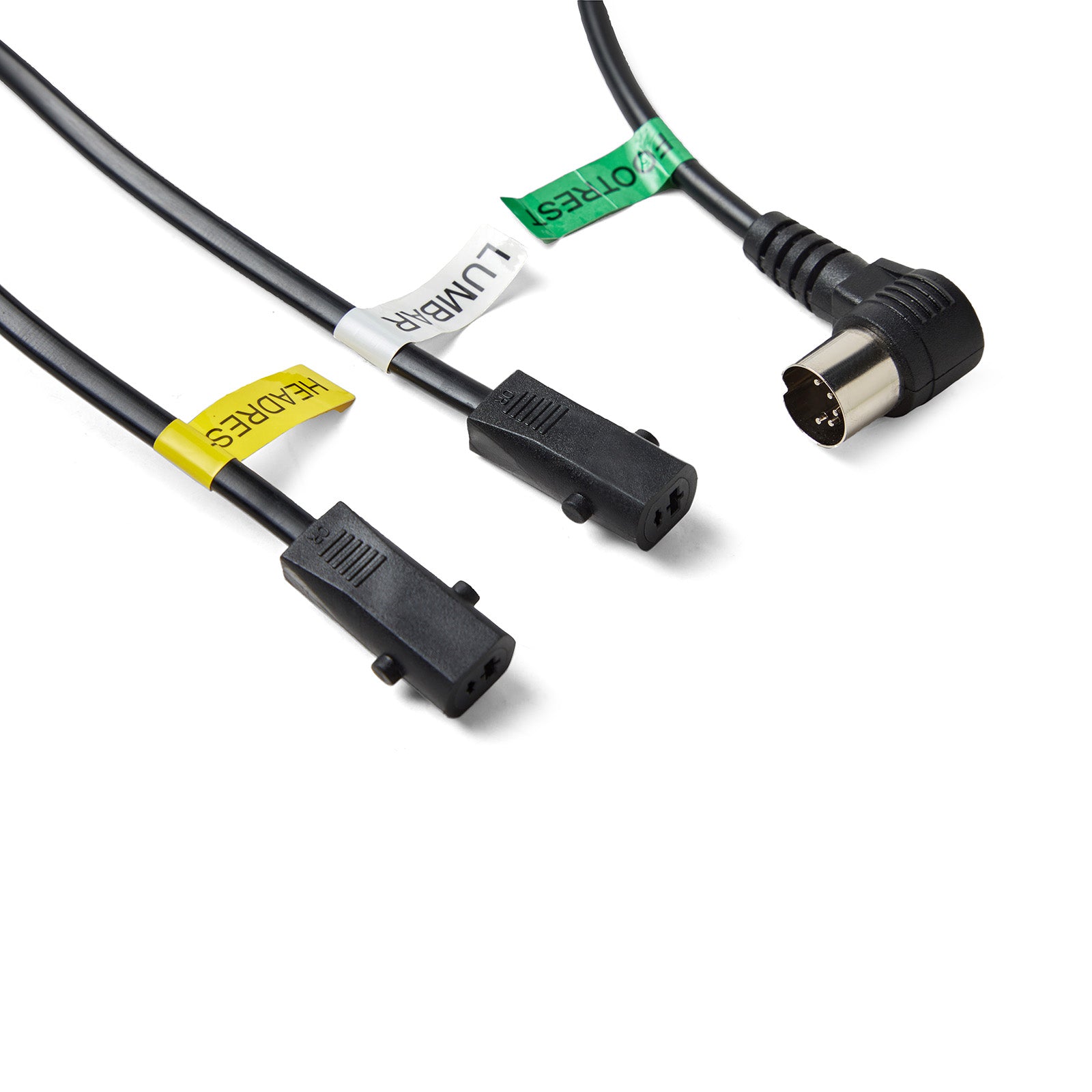 - Two female 2 pin plugs connect to lumbar motor and head motor.