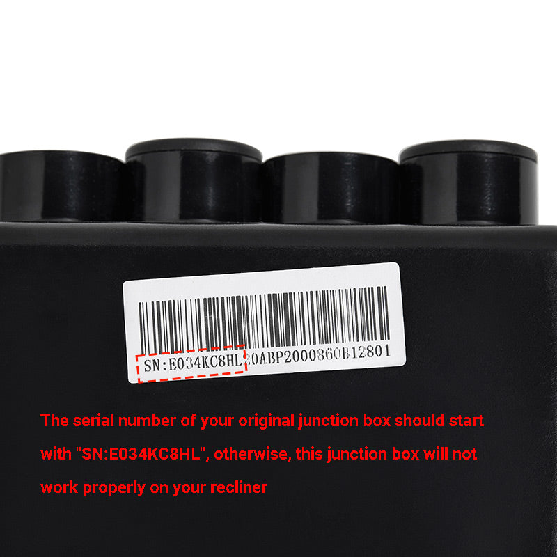 To decide if this junction box can replace yours, please check your original junction box, find the barcode sticker, and check if the serial number on the sticker is started with SN:E034KC8HL (please refer to the following image: