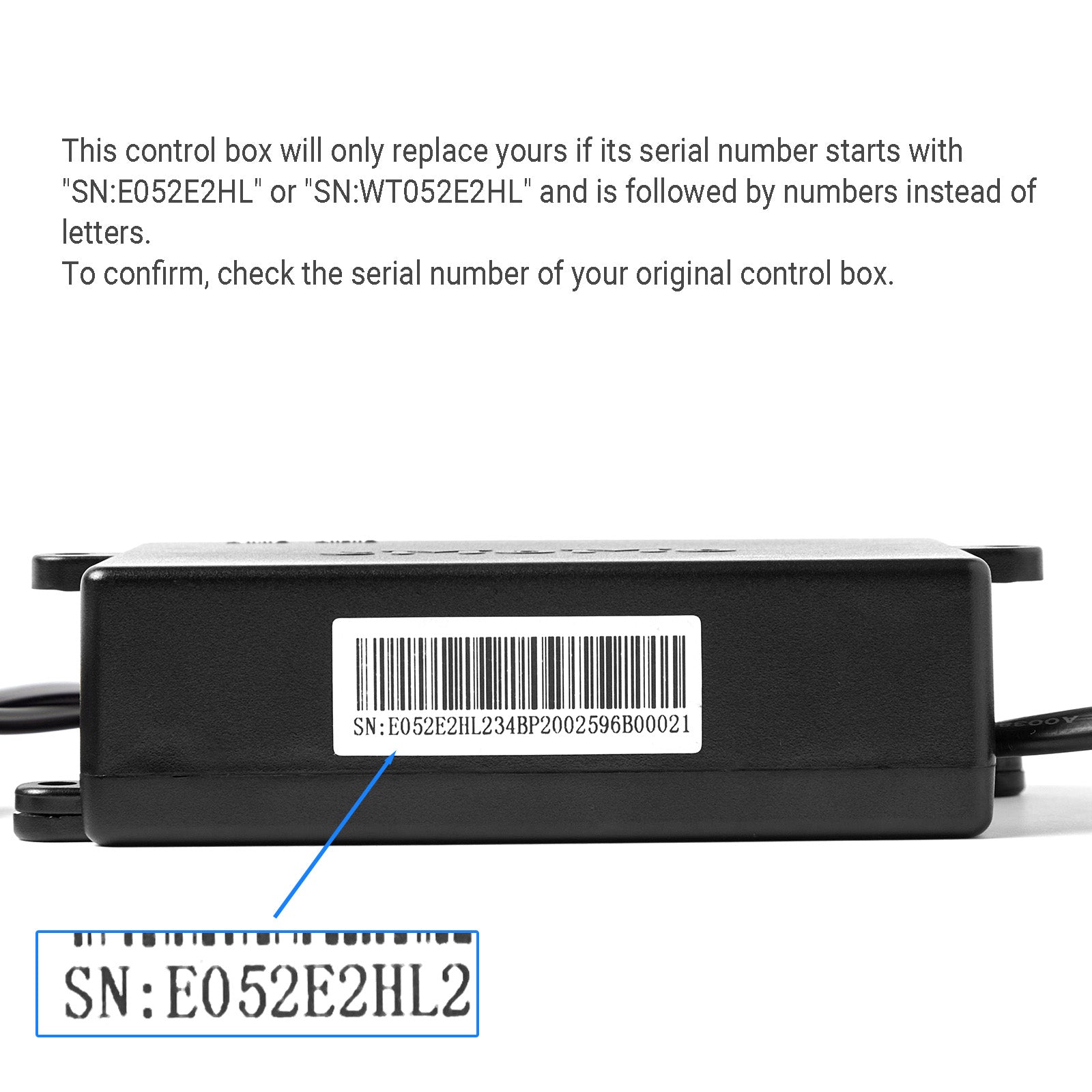 This control box will only replace your original control box if its serial number starts with "SN: E052E2HL " or "SN: WT052E2HL " and is followed by numbers instead of letters. To confirm, check the serial number of your original control box before purchasing.