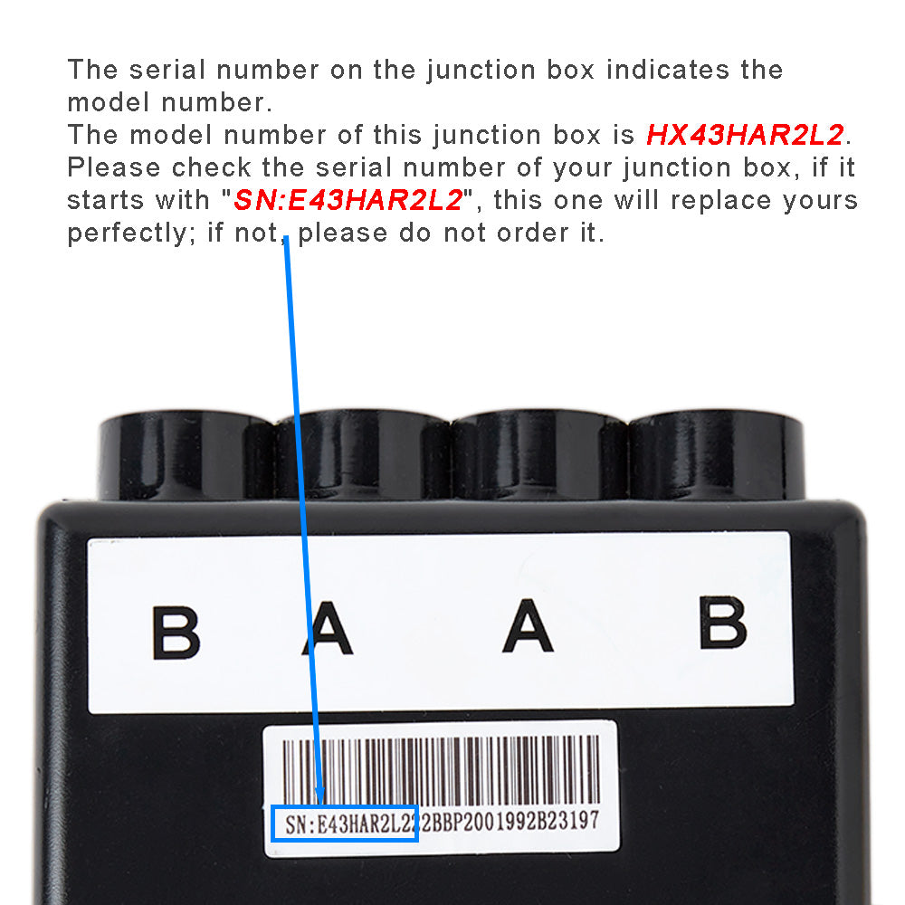 Please check the serial number of your junction box, if it starts with "SN:E43HAR2L2", this one will replace yours perfectly; if not, please do not order it.