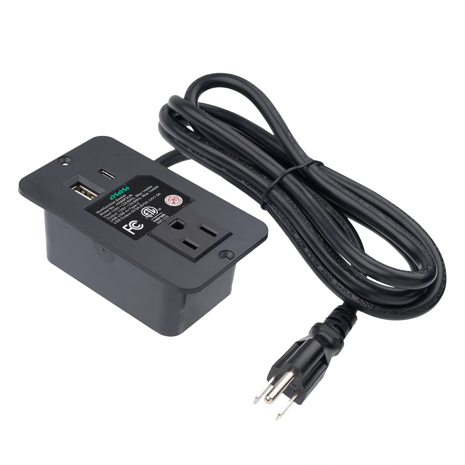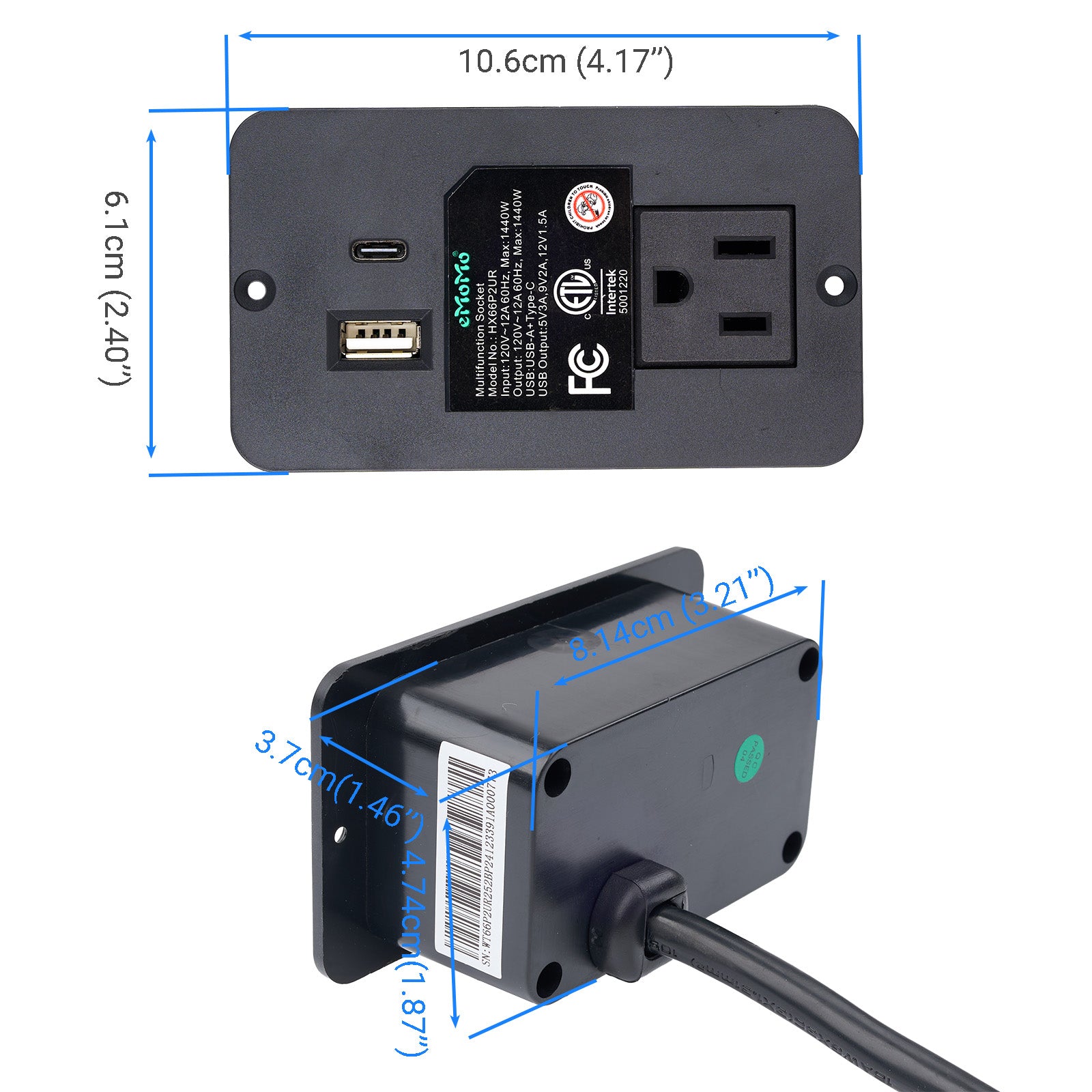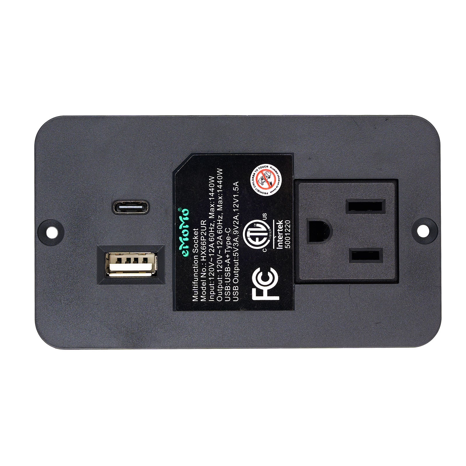eMoMo HX66P2UR Furniture Recessed Power Strip with AC Outlet, USB & Type C
