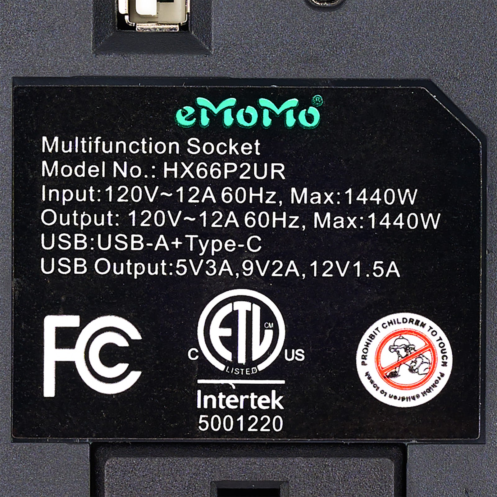 - The genuine eMoMo HX66P2UR is a multifunction recessed furniture power strip. It features one AC outlet, one USB port, and one Type C port, with a maximum output capacity of 1440W. This makes it an ideal recessed power supply solution for sofas, desks, and other furniture.