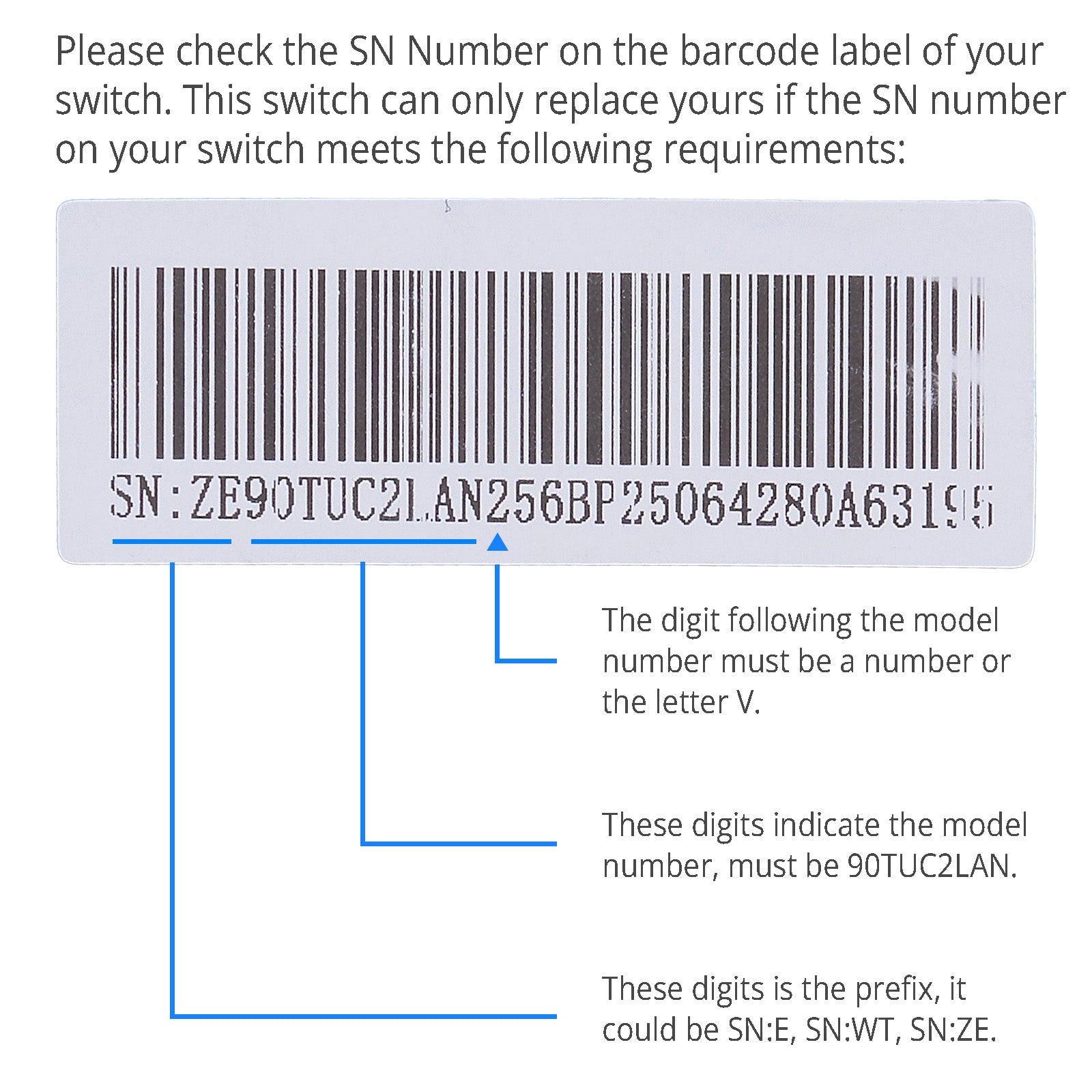 Your switch’s serial number must match all of the following points. Otherwise, this switch will not be compatible with yours: