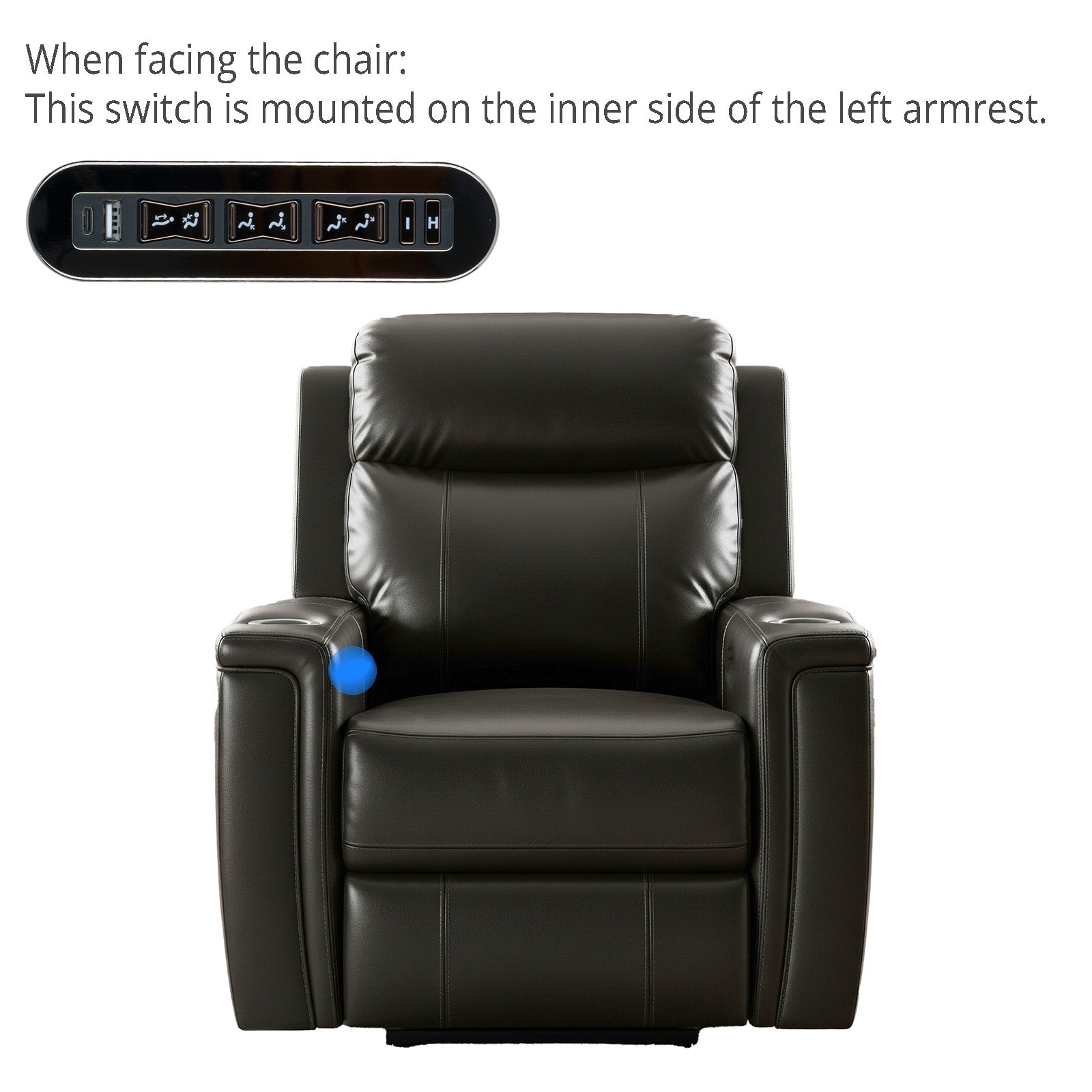 When facing the chair, this switch is mounted on the inner side of the left armrest.