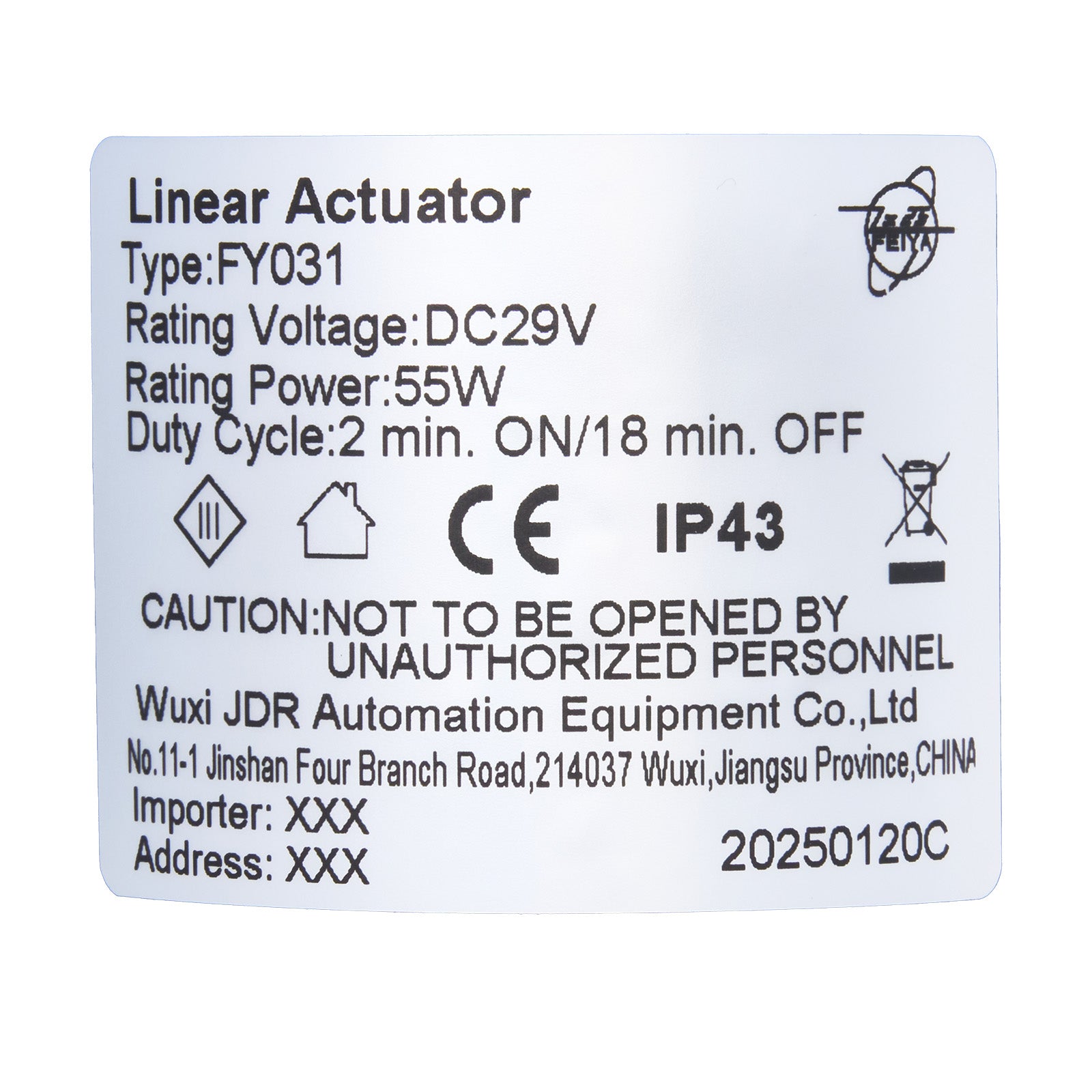 - This is the genuine FY031 linear actuator manufactured by Wuxi JDR.