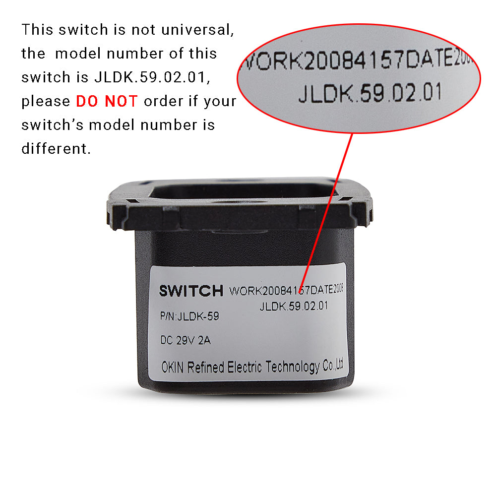 - This is the genuine JLDK.59.02.01 Recliner Switch, if your switch has the same model number, you can use this switch to replace yours.