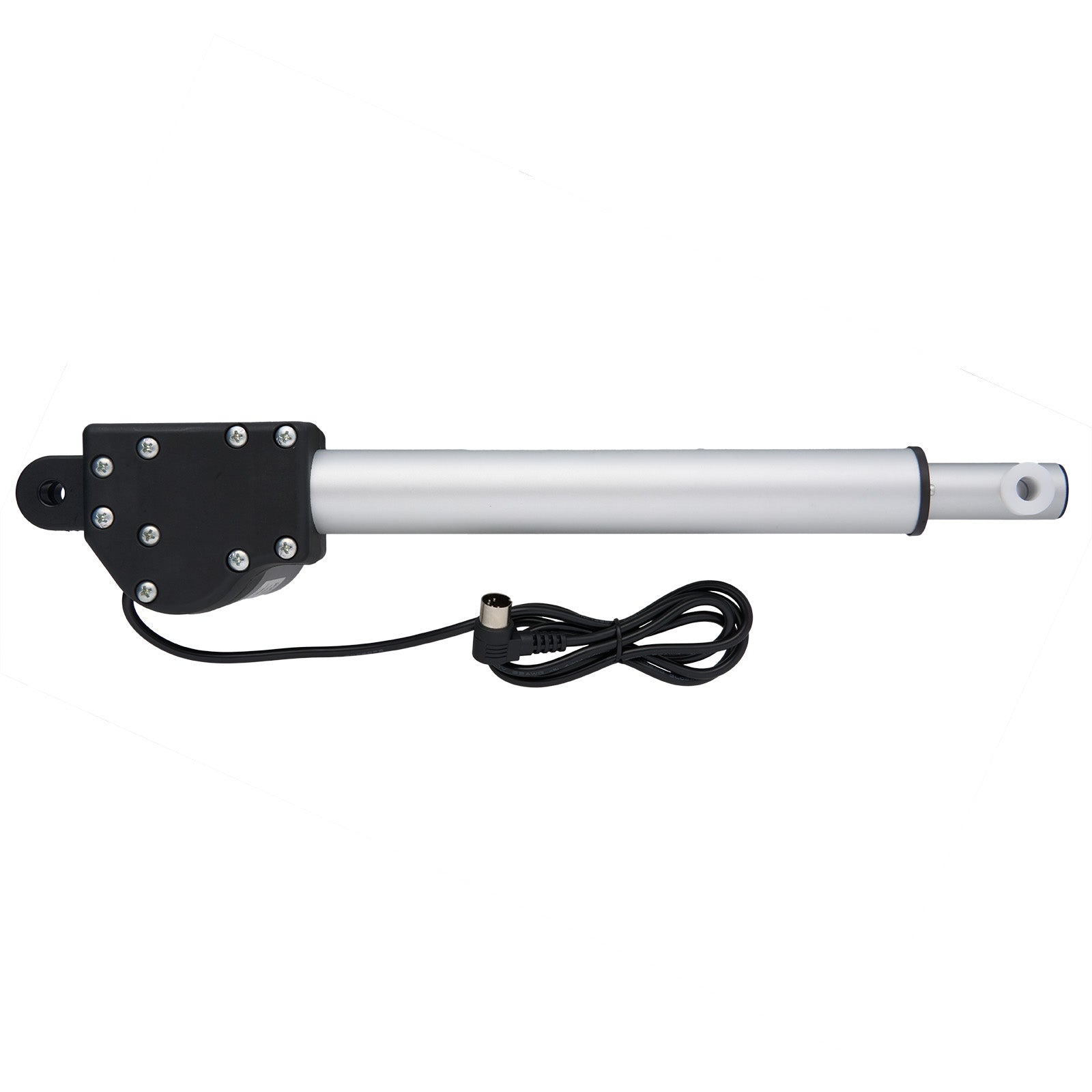 This actuator has one cable and plug. The plug is a right-angled 5 pin male plug, which connects to the control box or remote controller.
