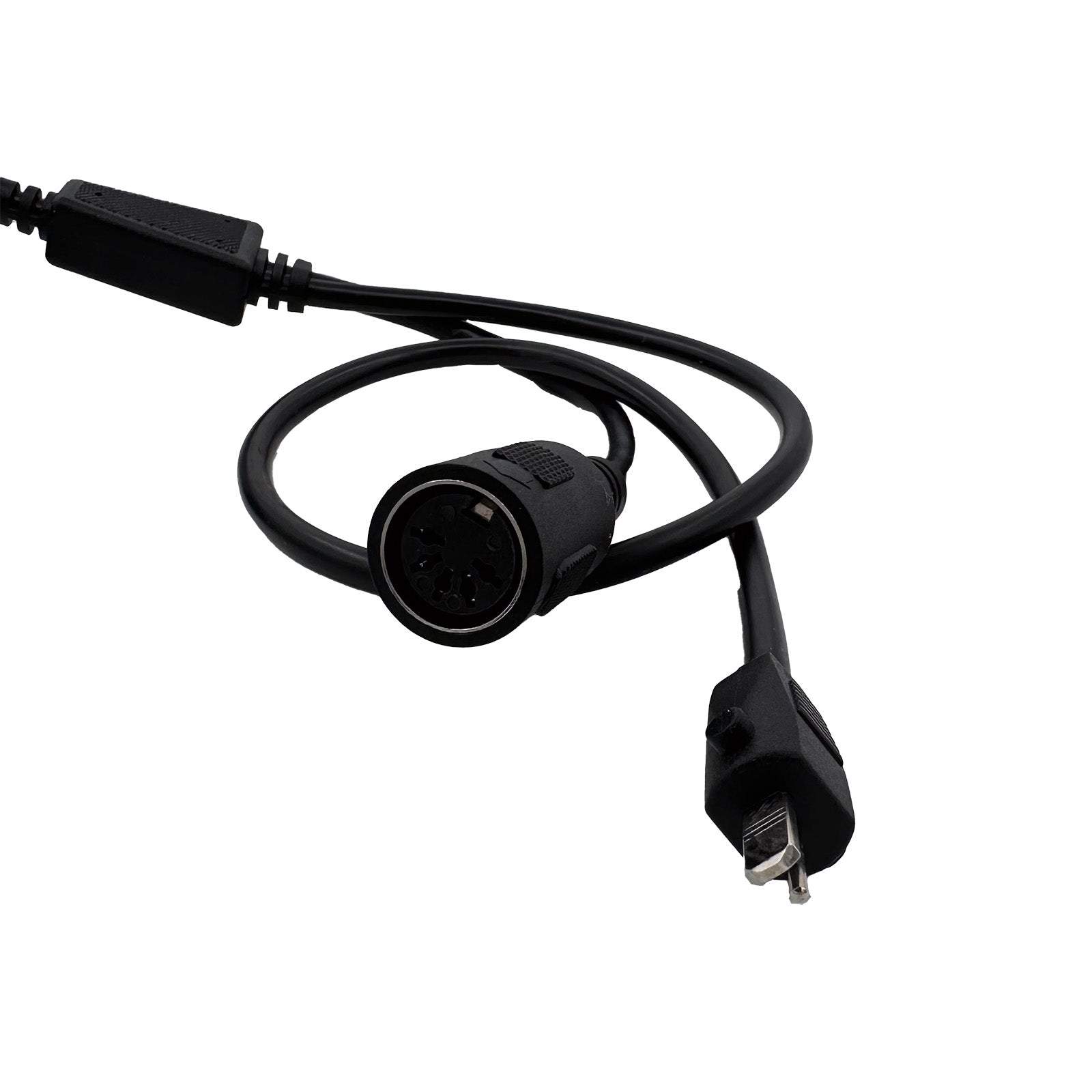 - The female 5 pin plug connects to the remote controller.