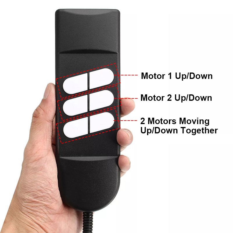 It can control un/down for 2 motors separately (the first 4 buttons) or together (the 5th and 6th buttons).