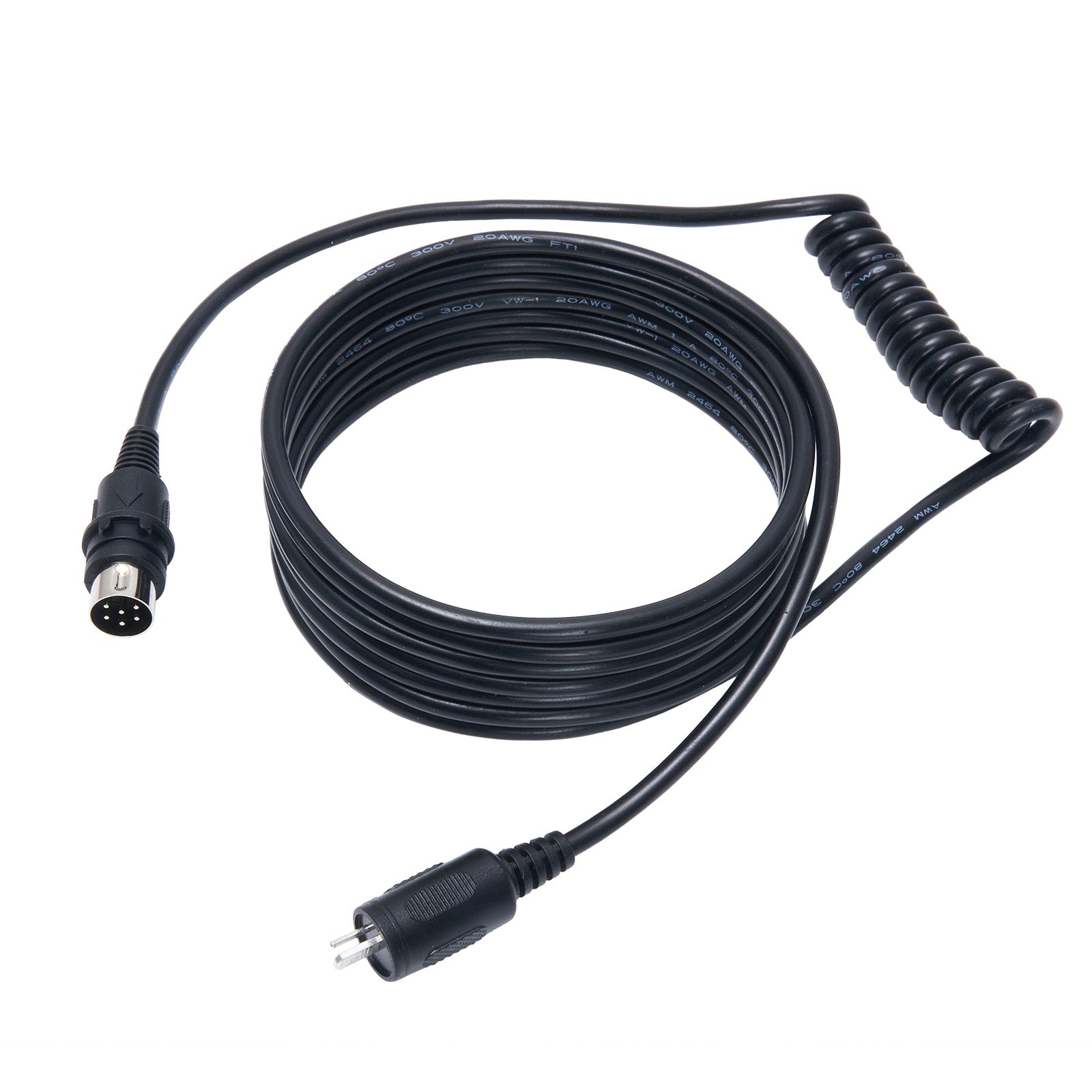 • This DC power cable features a 2 pin male plug on one side and a 6 pin male plug on the other side. It connects from the power adapter to the control box.